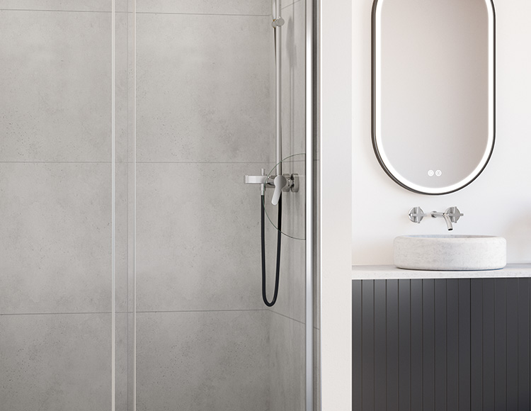 - Porte coulissante et panneau fixe avec accès au robinet extérieur*