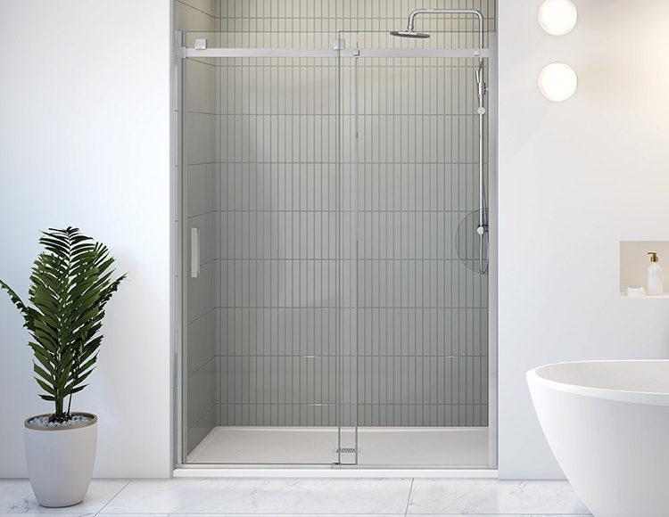 - Porte coulissante et panneau fixe avec accès au robinet extérieur*